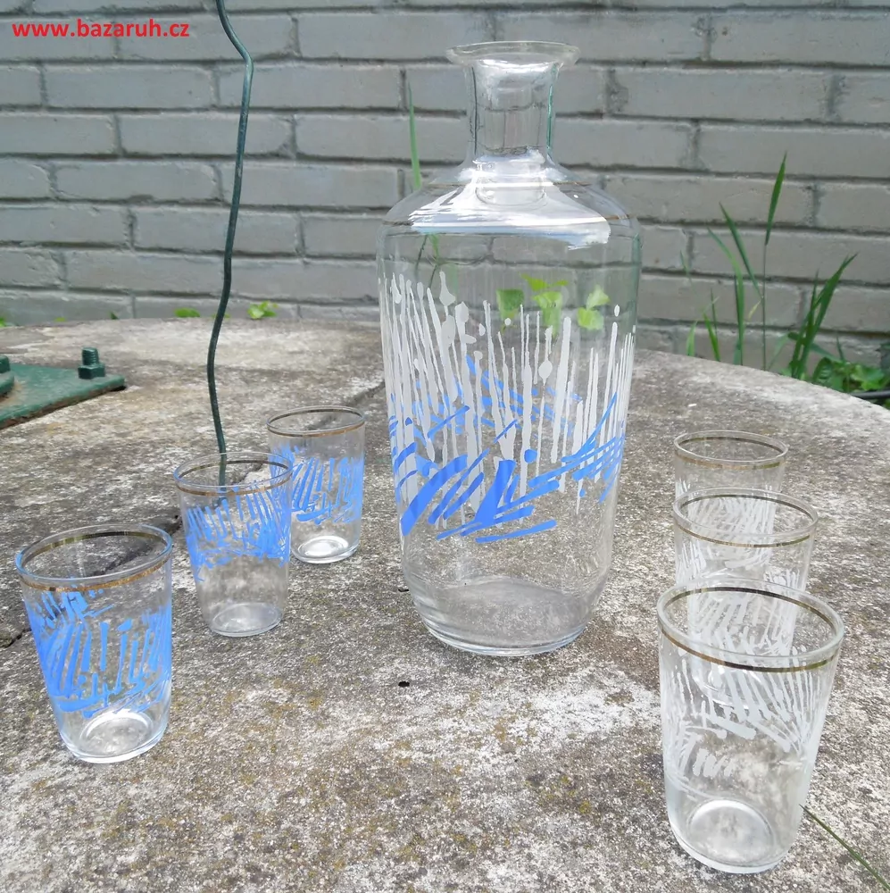 - KARAFA SKLENĚNÁ + 6 ŠTAMPRLÍ