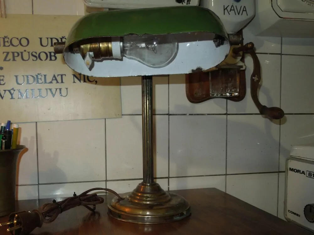 - STAROŽITNÁ BANKOVNÍ LAMPA BANKÉŘKA